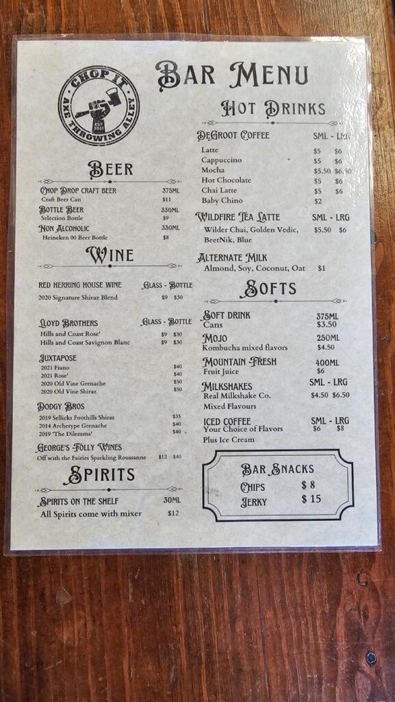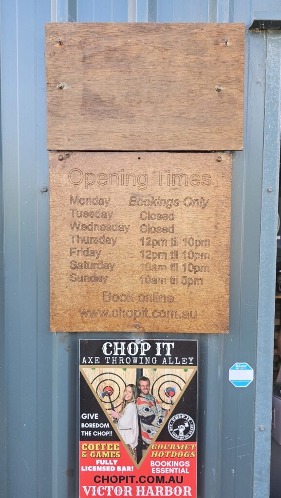 Located at 54 Maude Street in Encounter Bay, Chop It brings the adrenaline-fuelled experience of axe throwing to the Fleurieu Peninsula. It’s one of those activities that sounds intimidating at first, but once you have a go, you’ll be hooked. They have single and double lanes, and the staff walk you through everything so you feel confident from your first throw.